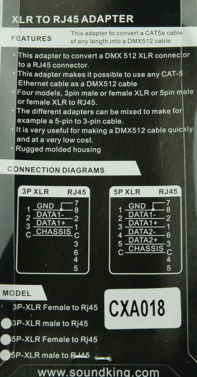 - XLRJ45 is very useful for making a DMX512 cable quickly and at a very low cost.